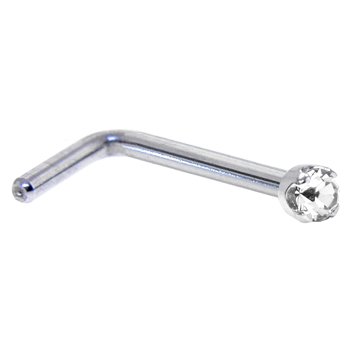 Genuine diamond nose ring. Artisan handmade 18 gauge 14kt white gold nose ring with a 2mm prong set genuine diamond. Made in USA factory direct. Gold body jewelry.. Specifications: 18 Gauge (1mm), 1/4 Inches (6mm) Length at Bend, Solid 14kt Gold, 2mm Genuine Diamond, SI1 Clarity, G Color, Prong-set, Handmade in USA, Hand polished