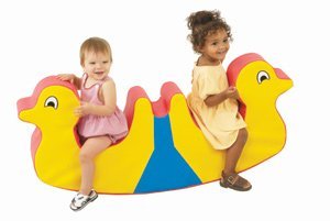 New advance in rocky toys. No hard edges. Solid foam core covered in bright bold colors.Cantilever base for wide support. 9"h seat.46"l x 12"w x 22"hCF705-130 DOUBLE DUCK ROCKEY